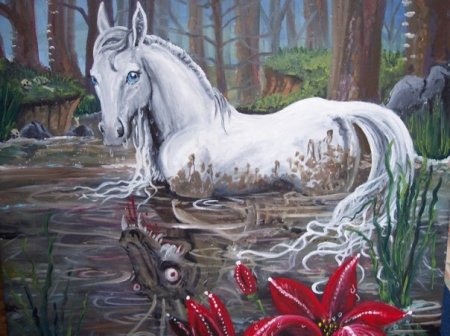 В фольклоре германских и кельтских народов чудесные животные, которые обитают в воде, а выходя на берег, принимают обличье Лошади. У разных народов Водяные лошади носят разные имена и отличаются характерами - келпи и ракушники, кабилл-ушти и эх-ушге, аванки и брэги... Нрав у каждой лошадки свой, но объединяет их одно - привычка заманивать людей и прыгать вместе с седоками в воду. Заканчиваются эти прыжки для людей по-разному: кто отделывается купанием, а кого и съедают.